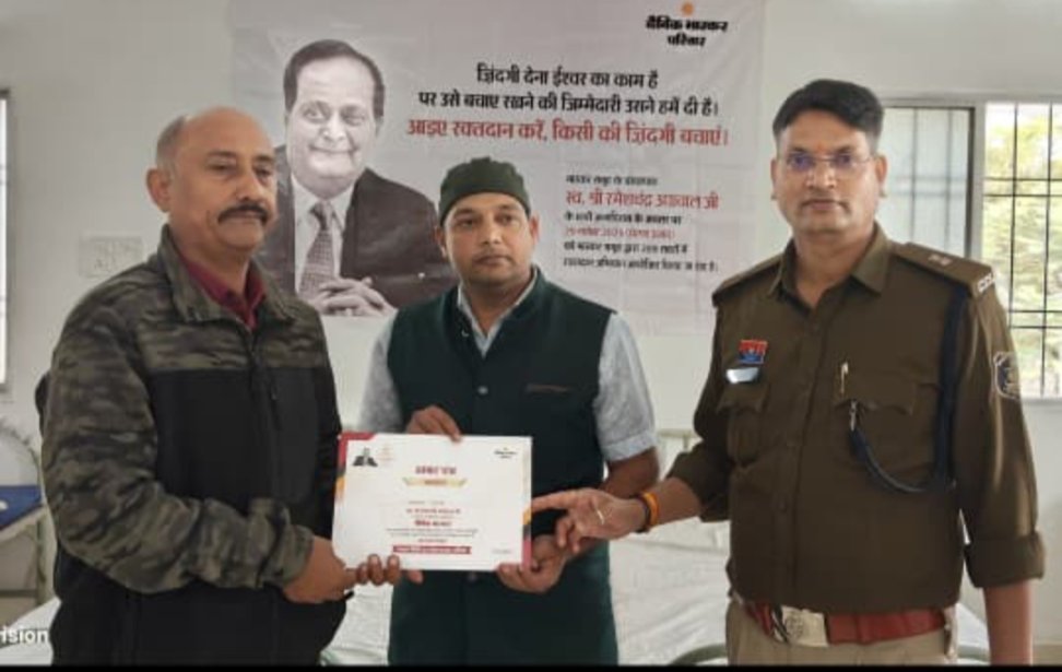 जिला अस्पताल में रक्तदान के लिए मिला प्रशस्ति पत्र
