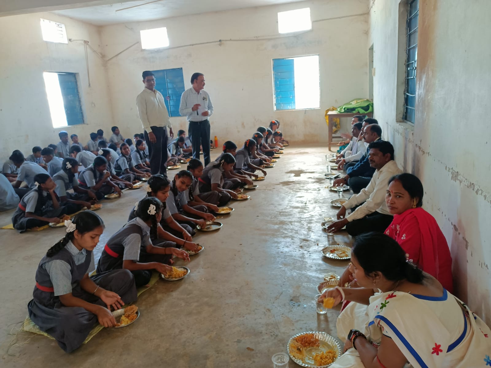 संजय नगर स्कूल में शिक्षक-छात्रों के लिए विशेष न्यौता भोज का आयोजन।