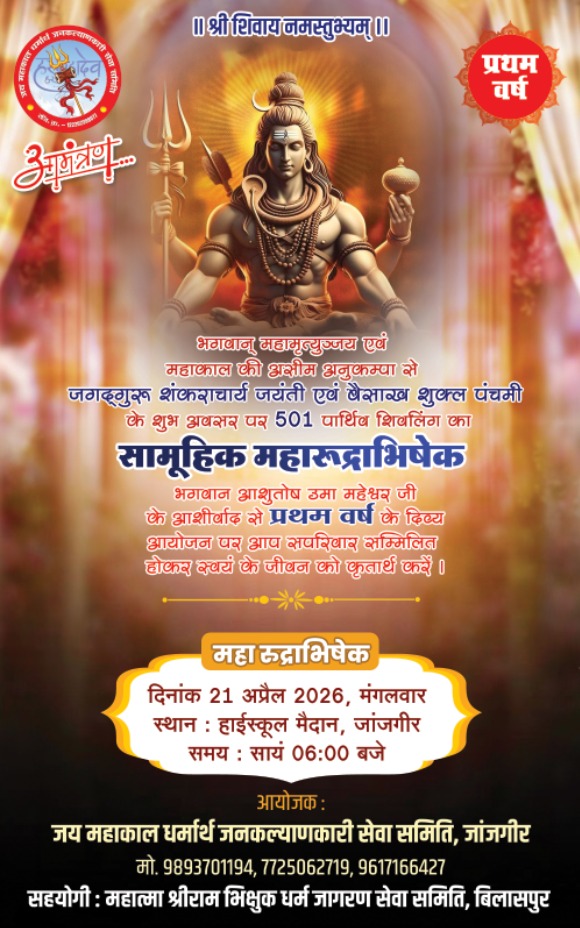 21 अप्रैल को 501 पार्थिव शिवलिंगों के साथ भव्य महारुद्राभिषेक