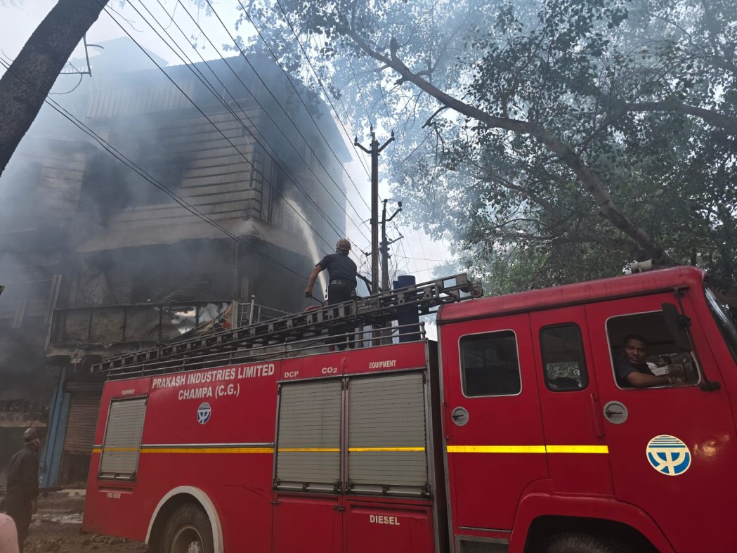 शिवरीनारायण के दुकानों में लगी आग ।