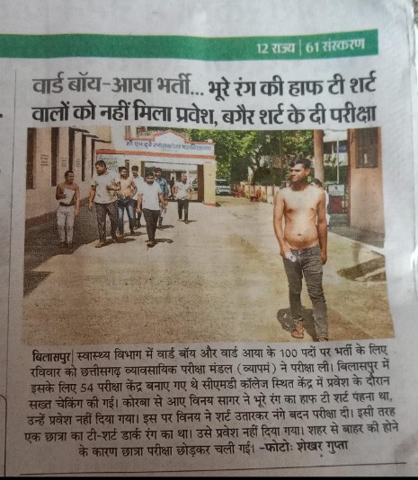 व्यापम द्वारा आयोजित छत्तीसगढ़ राज्य स्वास्थ्य विभाग की वार्ड/ ब्वॉय आया परीक्षा।