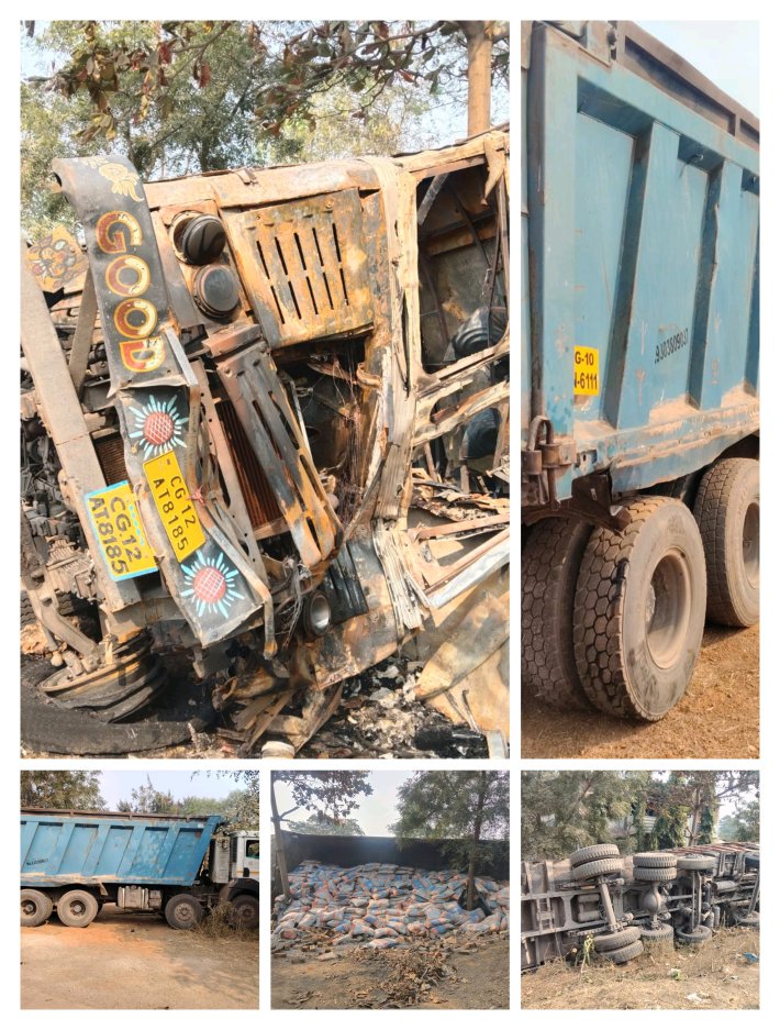 सीमेंट बोरी भरी ट्रक पलटी तो हाइवा टकराकर हुआ क्षतिग्रस्त