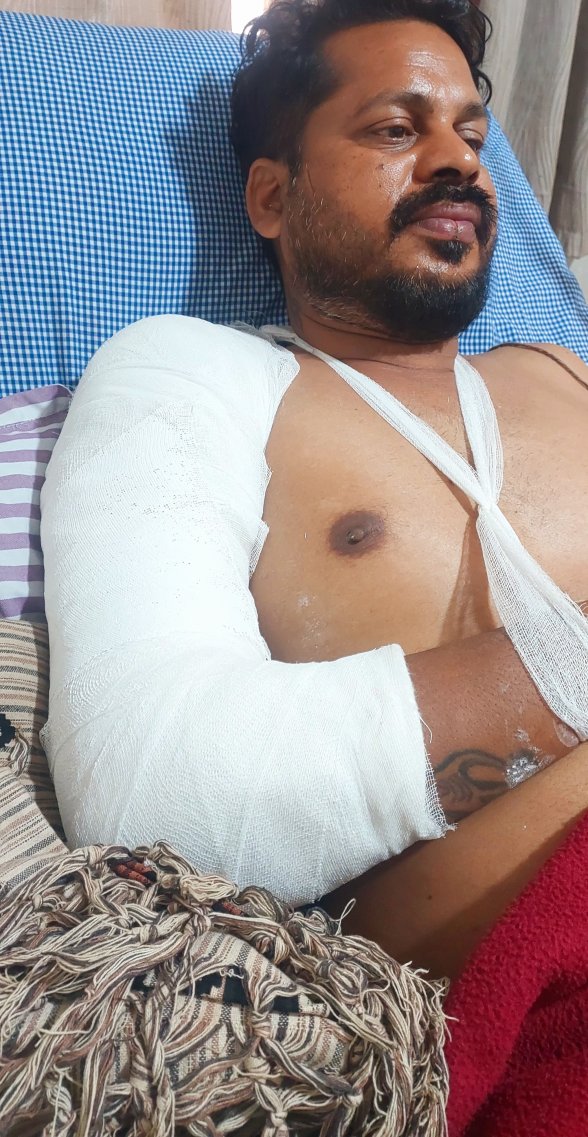 कुत्ते को बचाने के प्रयास में टूटी कोहनी