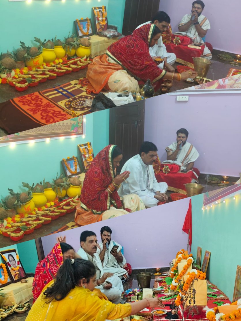 इस धार्मिक आयोजन में मुख्य यजमान के रूप में श्रीमती मंजरी श्यामसुन्दर तिवारी, श्रीमती मधुबाला तिवारी एवं अदिति तिवारी पूजन-विधि के दायित्वों का श्रद्धापूर्वक निर्वहन कर रही हैं। मुख्य आचार्य के निर्देशन में विधिवत पूजा-अर्चना कर कथा का शुभारंभ कराया गया तथा माँ की पावन स्मृति को श्रद्धासुमन अर्पित किए गए।