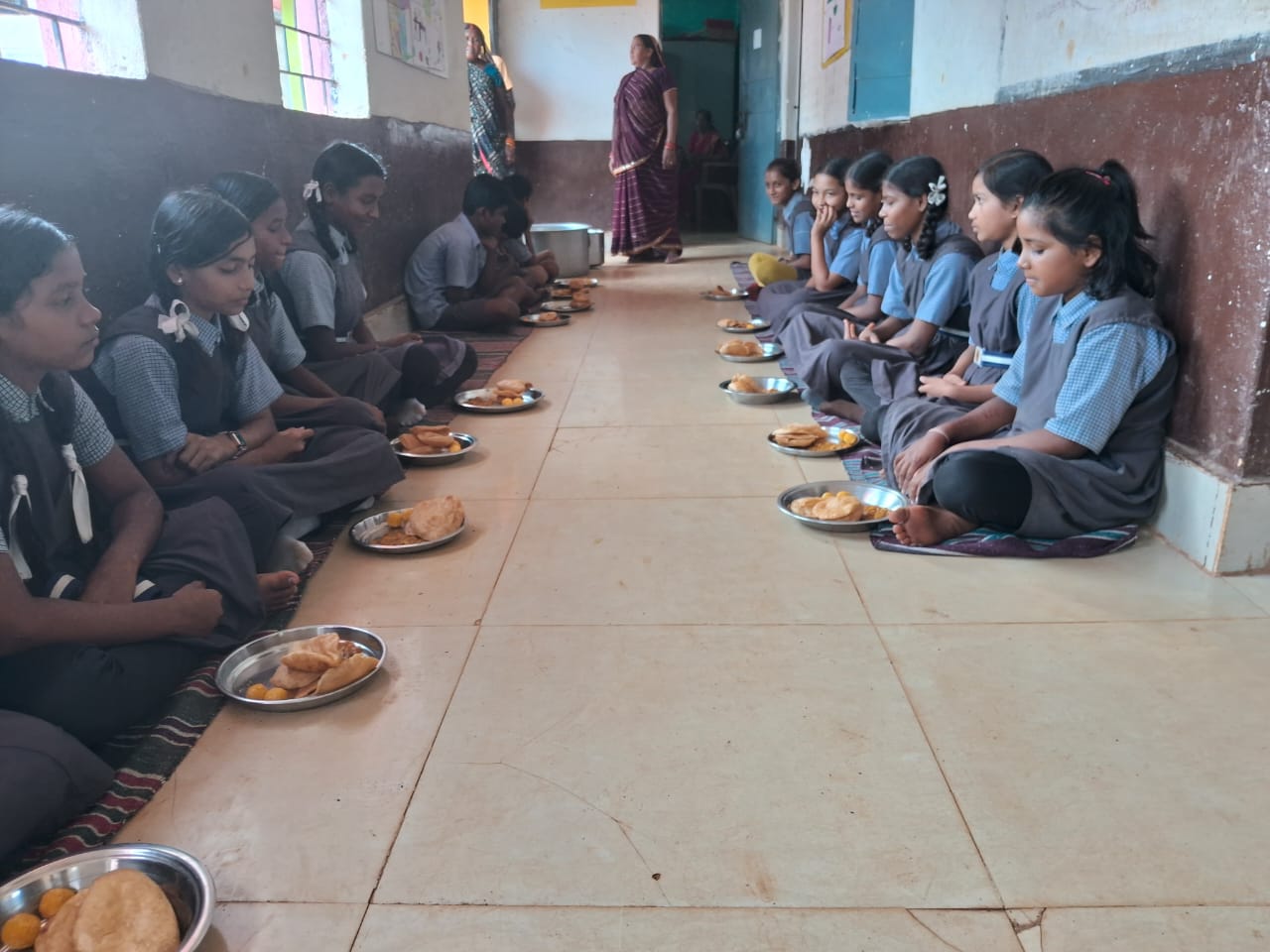 संजय नगर स्कूल में शिक्षक-छात्रों के लिए विशेष न्यौता भोज का आयोजन।