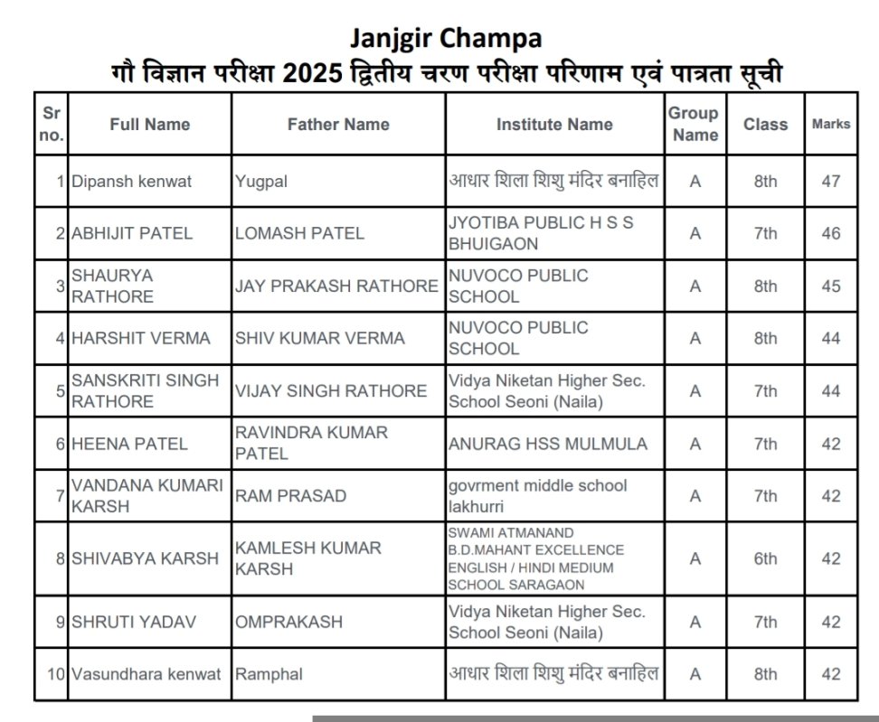 गौ विज्ञान परीक्षा परिणाम घोषित, जांजगीर जिले में दीपांश केंवट ने किया टॉप
