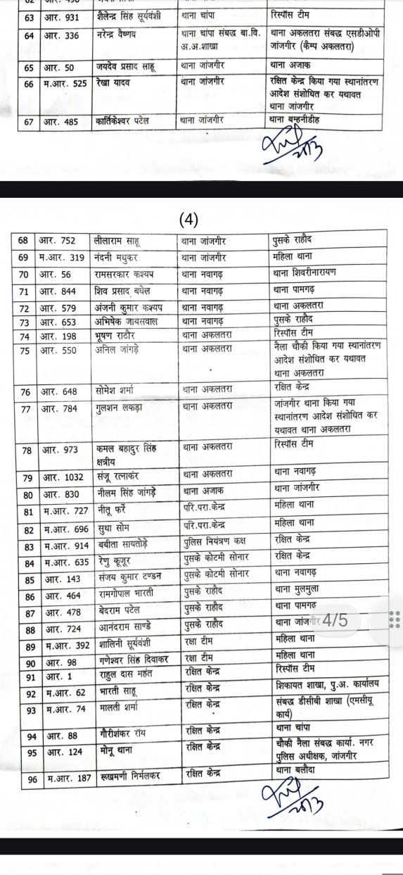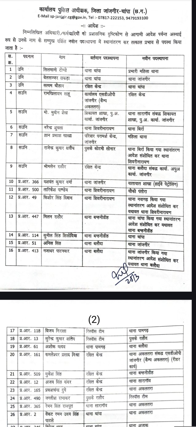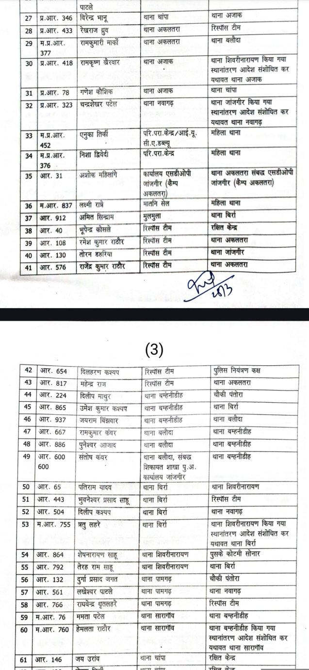जांजगीर जिले के पुलिस महकमे में बड़ा फेरबदल